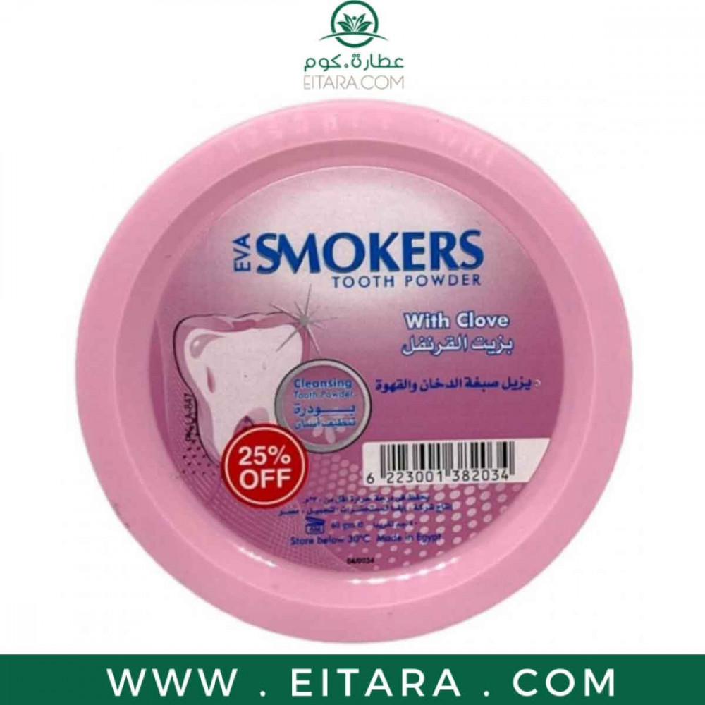 جرب مسحوق تبييض الأسنان بنكهة ايفا سموكرز لإزالة بقع النيكوتين والقهوة
