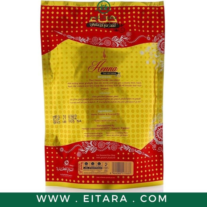 هو من منتجات الحناء الحمراء الجاهزة، وهي أحد أكثر المنتجات مبيعًا لدى متجر عطارة، وذلك لاستخداماتها في منح الشعر لونًا أحمر جذاب جنبًا إلى جنب مع تغذيته ومنحه الرطوبة واللمعان، تمَّ مزج الحناء في هذا المنتج من هيماني مع الزعفران لتُصبح غنية أكثر بالفوائد.