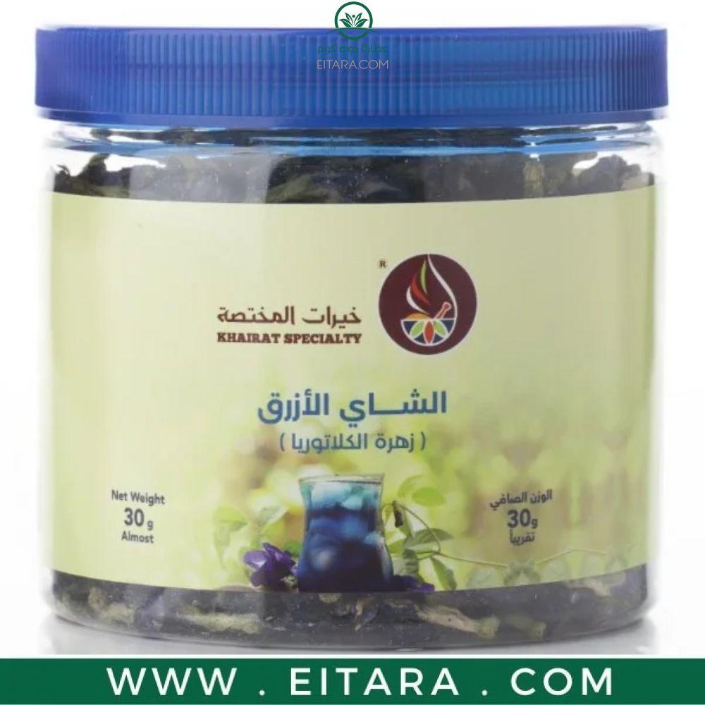 شاي أزرق طبيعي، أو ما يعرف باسم شاي زهرة البازلاء أو زهرة الشاي الأزرق التايلندي، هو شاي أعشاب يتميز بلونه الأزرق الملكي الذي يتحول إلى أرجواني عند إضافة عصير الليمون في مشهد طبيعي مذهل يجمع بين الجمال والنكهة والفوائد.